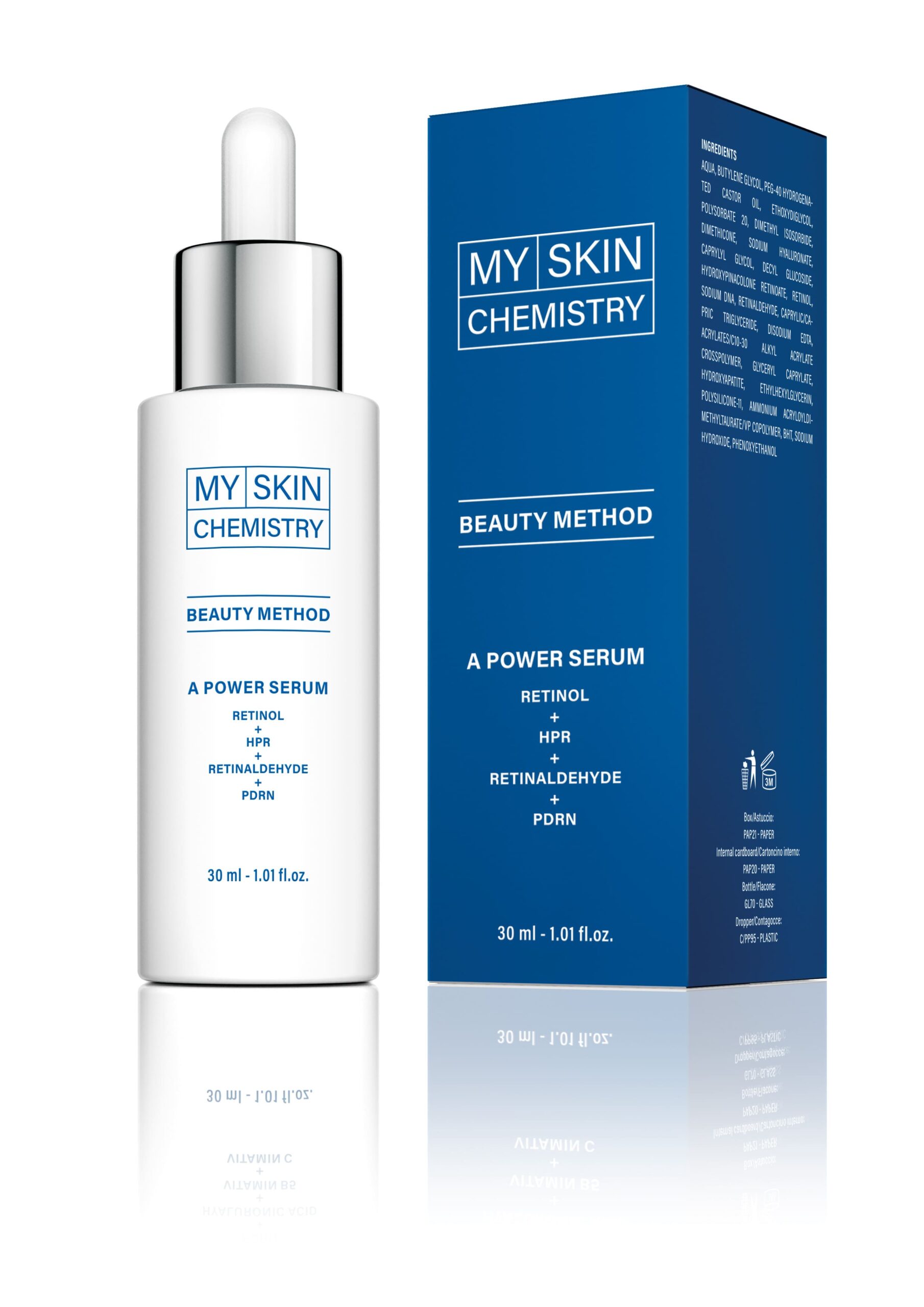 Ingredientele cheie ale acestei linii sunt: acid hialuronic brevetat, factori de creștere care mimează, perfluorodecalină, vitamine, PDRN și ingrediente împotriva acneei.